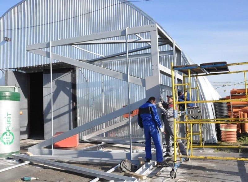 При строительстве складских сооружений, например, ангарного типа, использование стеклопластикового композита имеет ряд преимуществ - легкость материала позволяет минимизировать, либо полностью отказаться от спец. техники, снизить производственные затраты, что существенно отражается на стоимости строительных работ.